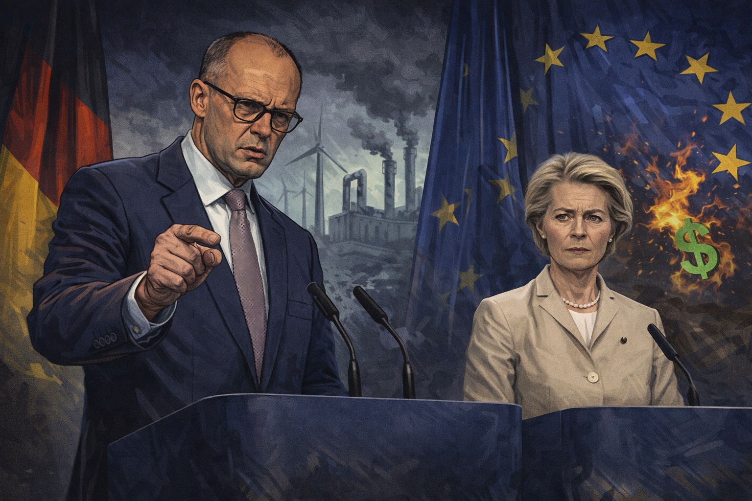 Председателят на Европейската комисия Урсула Фон дер Лайен и германският канцлер Фридрих Мерц се конфронтираха заради бъдещето на основния закон на ЕС за климата – налагането на въглеродния данък и зелената сделка на Брюксел.